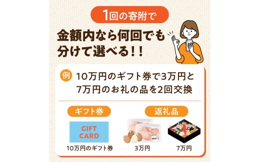 容量 | あとからセレクト【ふるさとギフト】 ※利用期限:発行より1年間 【注意事項】 ※ギフト交換の有効期間は、発行より1年間となります。有効期間内に必ず、ギフト交換をお願いいたします。 ※寄附後にお引越しなどを予定されている方は必ずお知らせください。ギフトコードを郵送でお送りした際に、お手元に届かない可能性がございます。 ※交換サイトにてギフト券ご利用の際は、本人確認の為、寄附者様氏名のご入力が必須となります。転売防止の為、コードご入力・ログイン後は、ギフト券お申込み時の寄附者様情報が表示されます。 ※ギフト券の転売は固く禁じます。(チケットショップやネットオークションでの販売を含む)転売が発見された場合、そのギフト券は無効とさせていただきます。 ※ネット環境の無い方はお申込み出来ませんのでご注意下さい。(ギフトの返礼品を書面やお電話などでお申し込みいただく事は出来ません) ※ギフトサイトに掲載の返礼品数・特産品は、随時変動いたします。 |