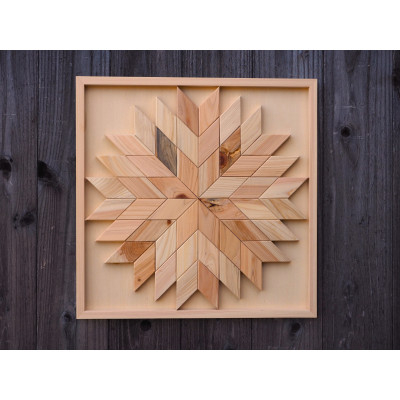 ウッドウォールアートの製作キット。接着剤を付けてパズルのようにはめていくとカッコいいウォールアートの出来上がり。