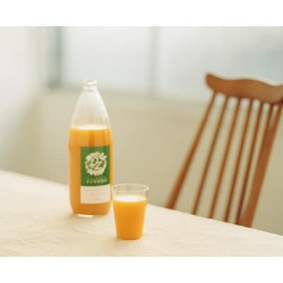 収穫を遅らせることにより、味を極限まで高めた越冬完熟みかんだけを使用し、皮をひとつひとつ手作業で剥き、余分なものを加えずに作った、100%果汁ジュース。