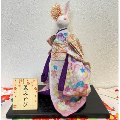 真っ白なうさぎにほんのりと紅を差し、日本の美しい縮緬を着物に仕立て着せつけました。