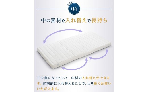 エアウィーヴの特長である寝返りのしやすさや優れた体圧分散はそのままに、一枚敷き可能な三つ折りマットレスです。