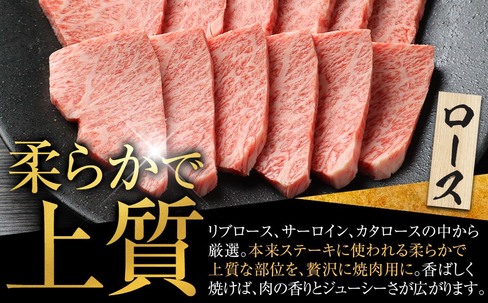 【定番商品】 問答無用、焼肉界のプリンスは、ロース。 弊社が繁殖から肥育、そしてお客さまにお届けするまで、一貫生産・販売。血統の見極めと牛の健康状態の繊細なる管理、そして独自の配合飼料によって最高品質の黒毛和牛を創り出しています。 ロースは表示基準に従い、リブロース、サーロイン、カタロースから厳選して使用しています。 オレイン酸含有率に起因する口溶けの良さ、グルタミン酸30倍のしっかりした旨み成分。本来であれば、ステーキにする部位を贅沢にも焼肉、網焼きカットに。丁寧にスジと余分な脂身を取り除いて、最高の状態でお届けします。ご家庭で、ご家族、ご友人と最高級焼肉店の味わいをお楽しみください。塩コショウでも充分、しっかりと準備をして、様々や薬味とポン酢で、特にオススメの食べ方は、「生ワサビ」+「高級塩」を練り合わせたワサビ塩です。黒毛和牛本来の甘みがより一層引き立ちます。 お召し上がりの際には、調理する30分ほど前に冷蔵庫から出して室温になじませ、サシがなじんでしっとりしてから、加熱してください。 【黒毛和牛生産牧場直売】 創業昭和16 年、初代が農耕用の牛飼いを始めてから、80 年余りの歳月が流れてきました。 飼育頭数も自社で1,200頭、グループ牧場合計で4,000頭を数えるに至りました。 最高品質の牛を育てるためにこだわっているのが「繁殖から肥育まで自社牧場で一貫生産」ということ。安心で美味しい牛肉を創ることは、それを口にする人の健康を守り、明日の活力を提供する重要な我々の使命です。 各地に存在するブランド牛にも決してひけをとらないクオリティーになっているかと思います。新参者ですので、ブランド牛に比べて圧倒的に「お値打ち」に提供させていただいております。 ※生鮮食品につき、お客様都合での返品、交換はいたしかねます。 ※北海道、沖縄県、一部離島にはお届けできません。ご了承ください。