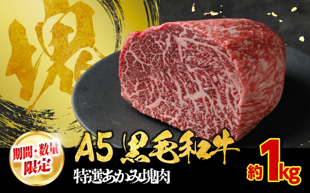 【期間・数量限定】大府市特産 A5黒毛和牛特選あかみ塊肉 1.0kg / あかみ赤身牛肉