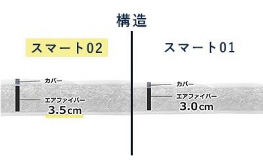 中材のエアファイバー(R)はエントリーモデル「スマート01」よりも0.5cm厚い仕様です。