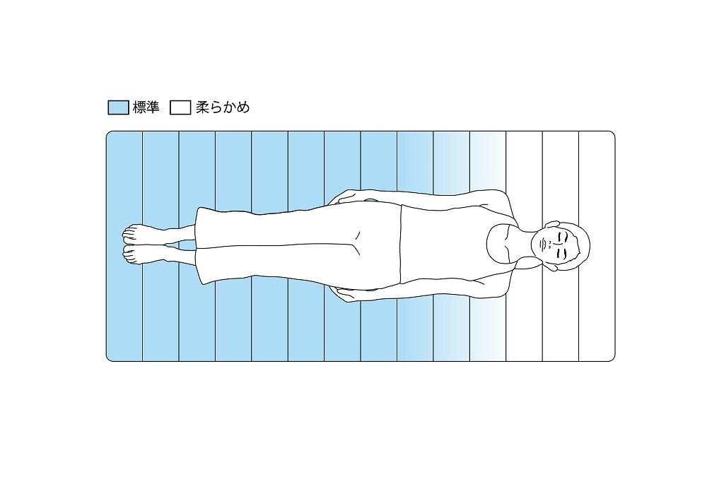 腰部分のサポートを強化した機能性モデル 肩は柔らかめ、腰は硬めにアレンジ
