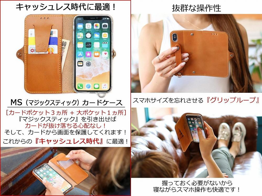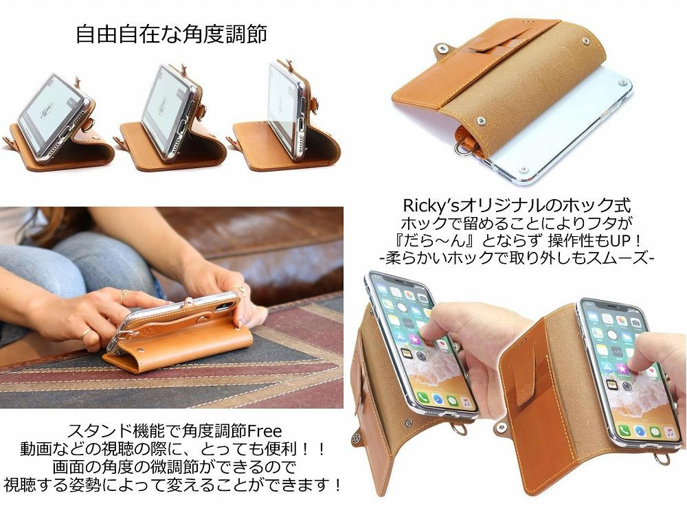 スタンド機能・グリップループ・MSカードポケットなど他のレザーケースには無いオリジナル仕様、某有名ECサイトでは栃木レザースマホケースと言えば Ricky’s Leather と言われるほど人気アイテムです。