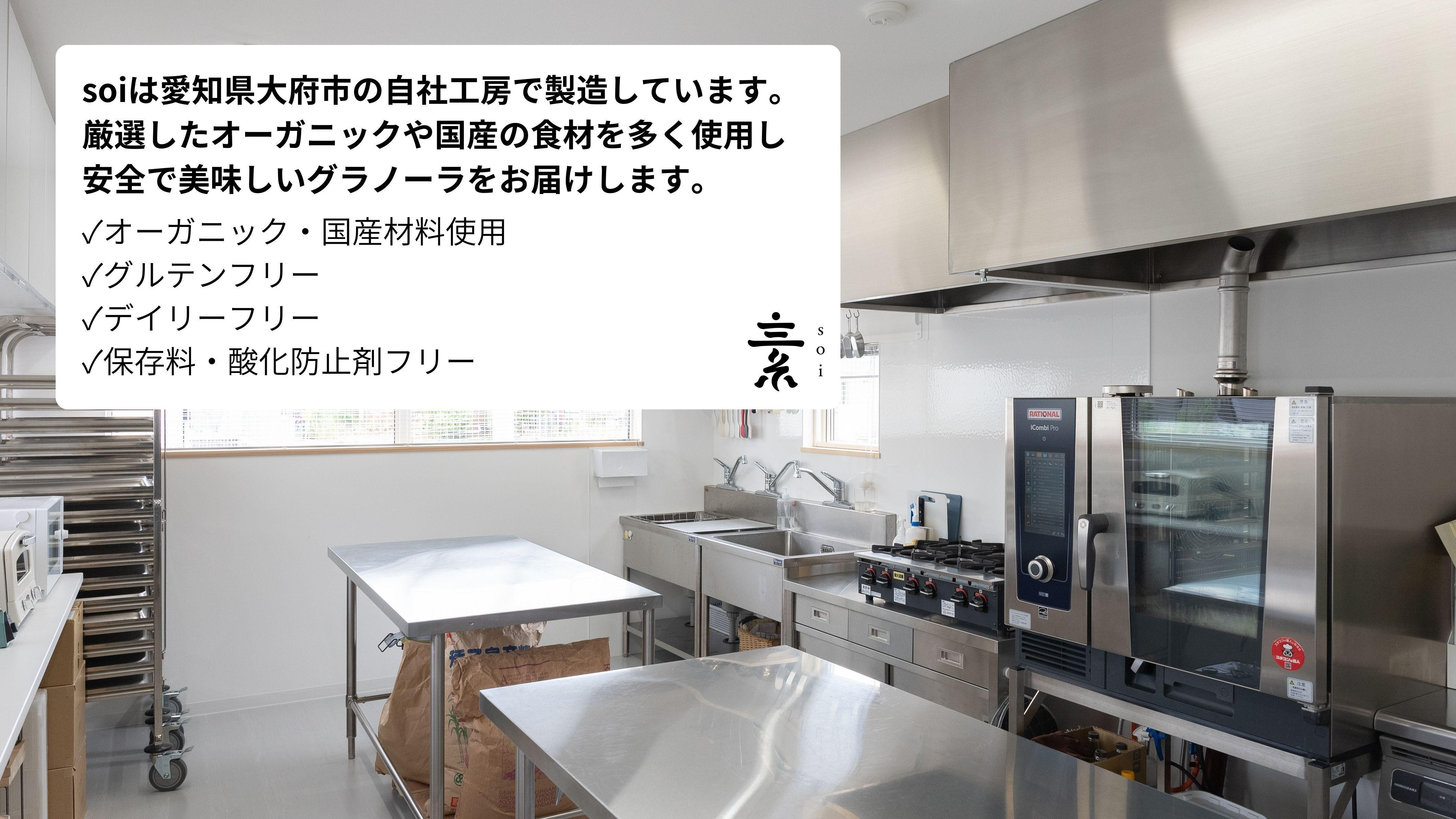soiのグラノーラは、有機オートミール、種子島産粗糖、有機ココナッツオイル、国産の玄米粉をベースに、