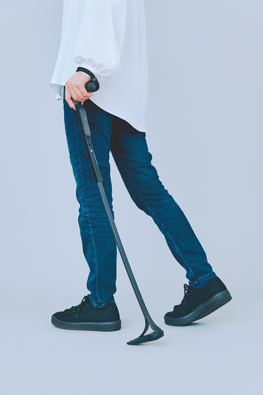一般的な杖のように「点で止まる、支えることがない」ことが最大の特徴です。杖がしなることで歩きをサポートする、「杖のようで杖でない」新発想の製品です。