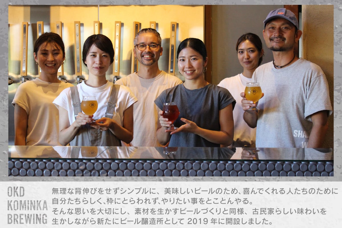 時を醸した土蔵や黒板壁が歴史を物語り、 昔ながらの建物を残しながら、背景に工場地帯の煙突がそびえ立つ、今と昔が交差する町に、OKD KOMINKA BREWINGは誕生しました。