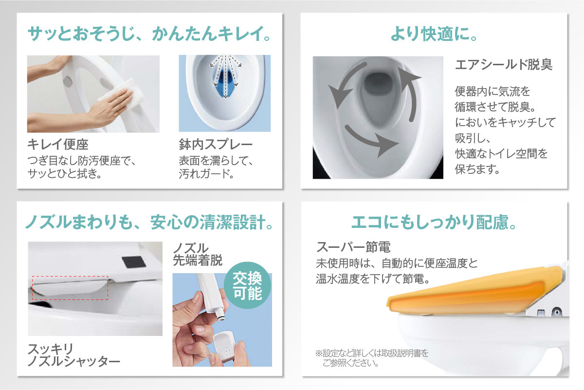 お手入れ簡単。キレイにこだわったハイスペックモデルの温水洗浄便座。