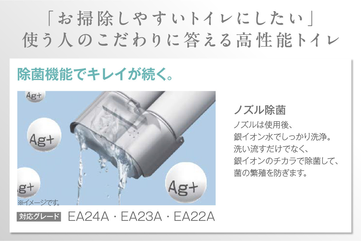お手入れ簡単で除菌もできる。キレイにこだわったハイスペックモデルの温水洗浄便座。 シャワートイレ New PASSO EA24A
