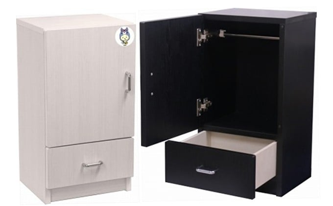 ペット用の服を収納できる木製キャビネットです。
