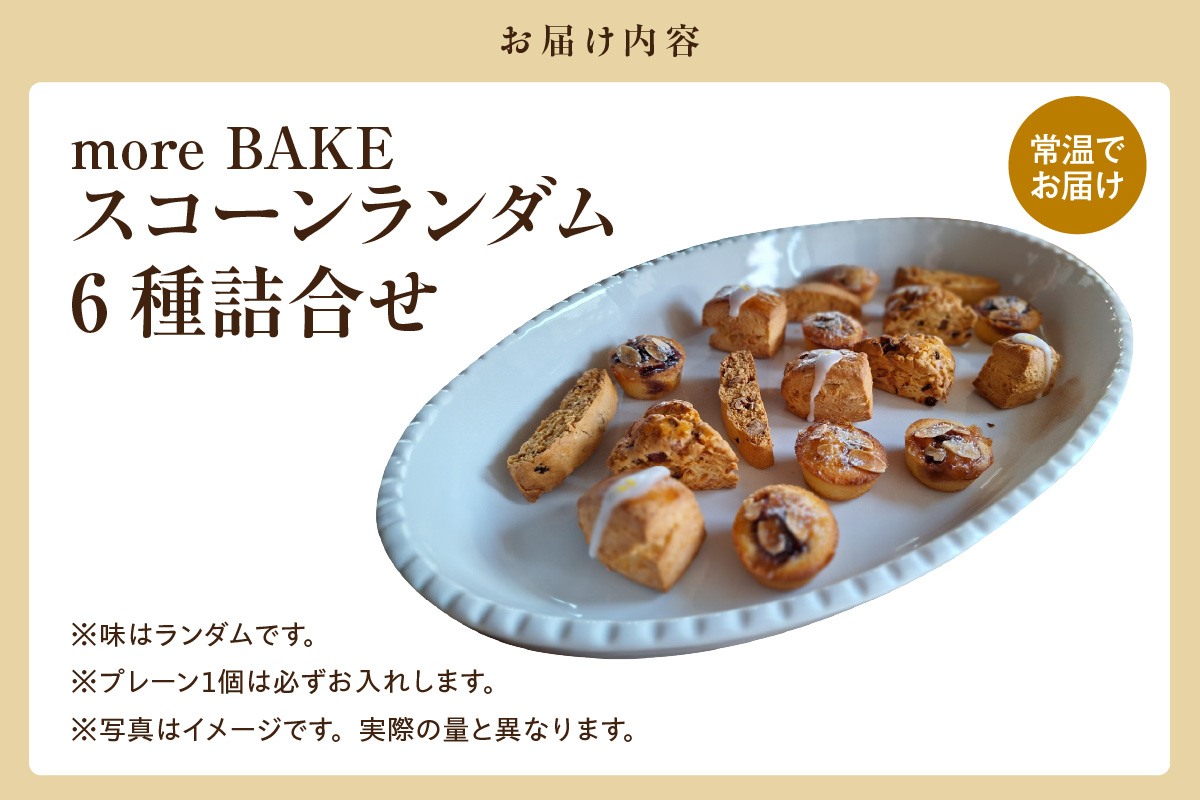 | 容量 | プレーン、くるみ味噌チーズ、わさび醤油塩昆布、チーズカレー、キャラメルりんご、チョコチップ、紅茶ラムレーズン、ほうじ茶チョコ、抹茶大納言、抹茶ホワイトチョコ、くるみ全粒粉、大学芋風鳴門金時(グルテンフリー)、はちみつメープルかぼちゃ(グルテンフリー)などからランダム6種 ※プレーン1個はすべてお入れします |