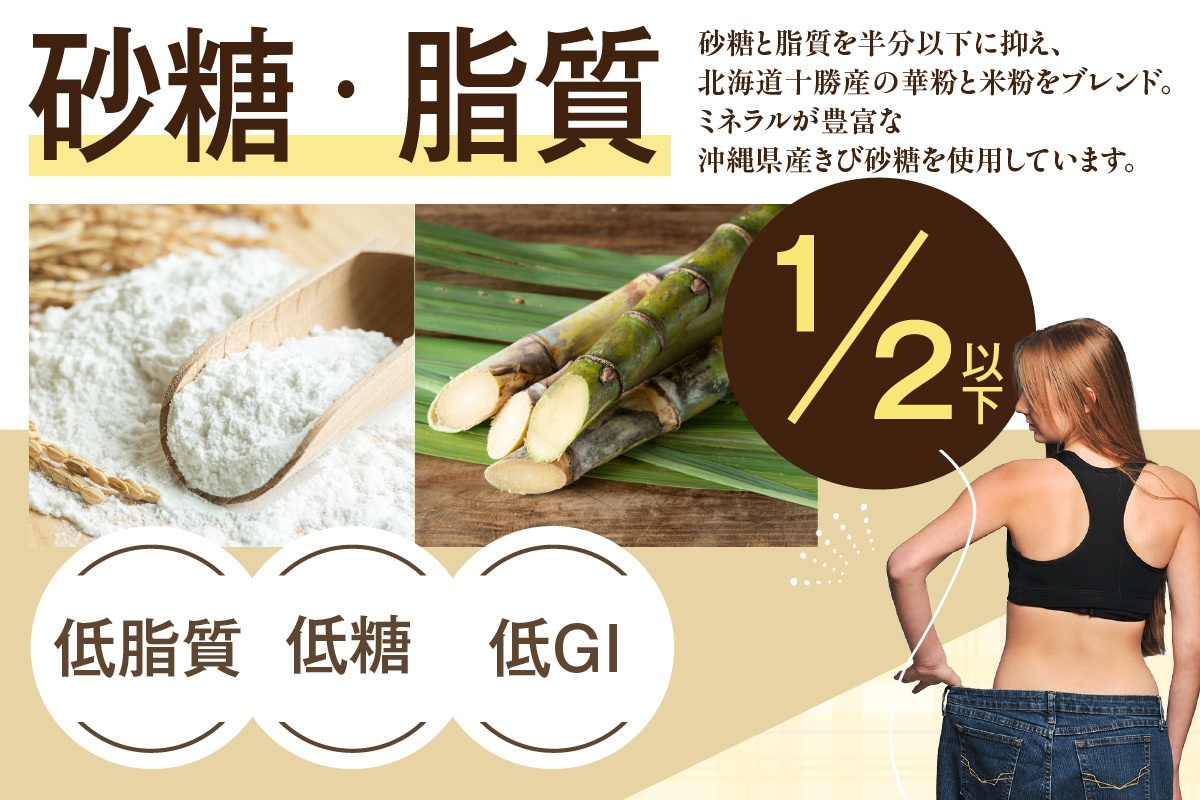 米油を使用して脂質・糖分を半分程に控えているため、あっさりヘルシーで罪悪感少なく食べて頂けます。
