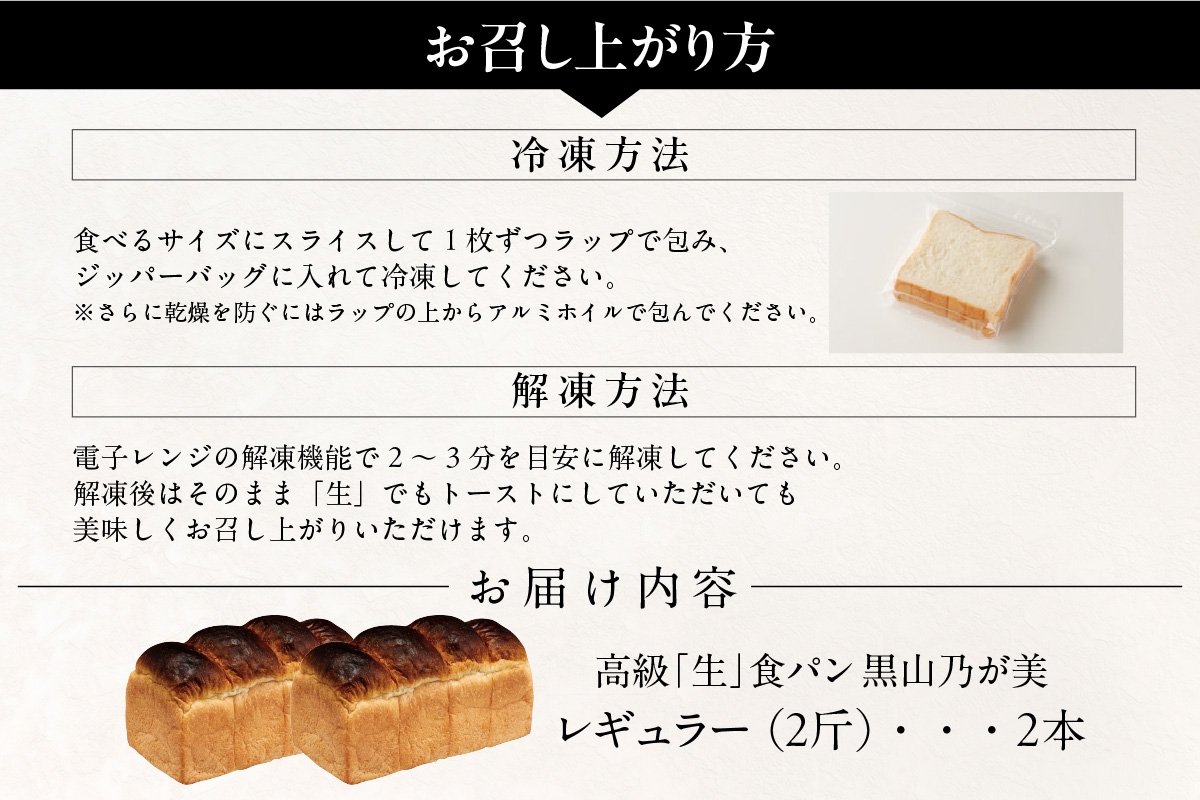 高級「生」食パン 黒山乃が美 レギュラー(2斤)2本【選べ…