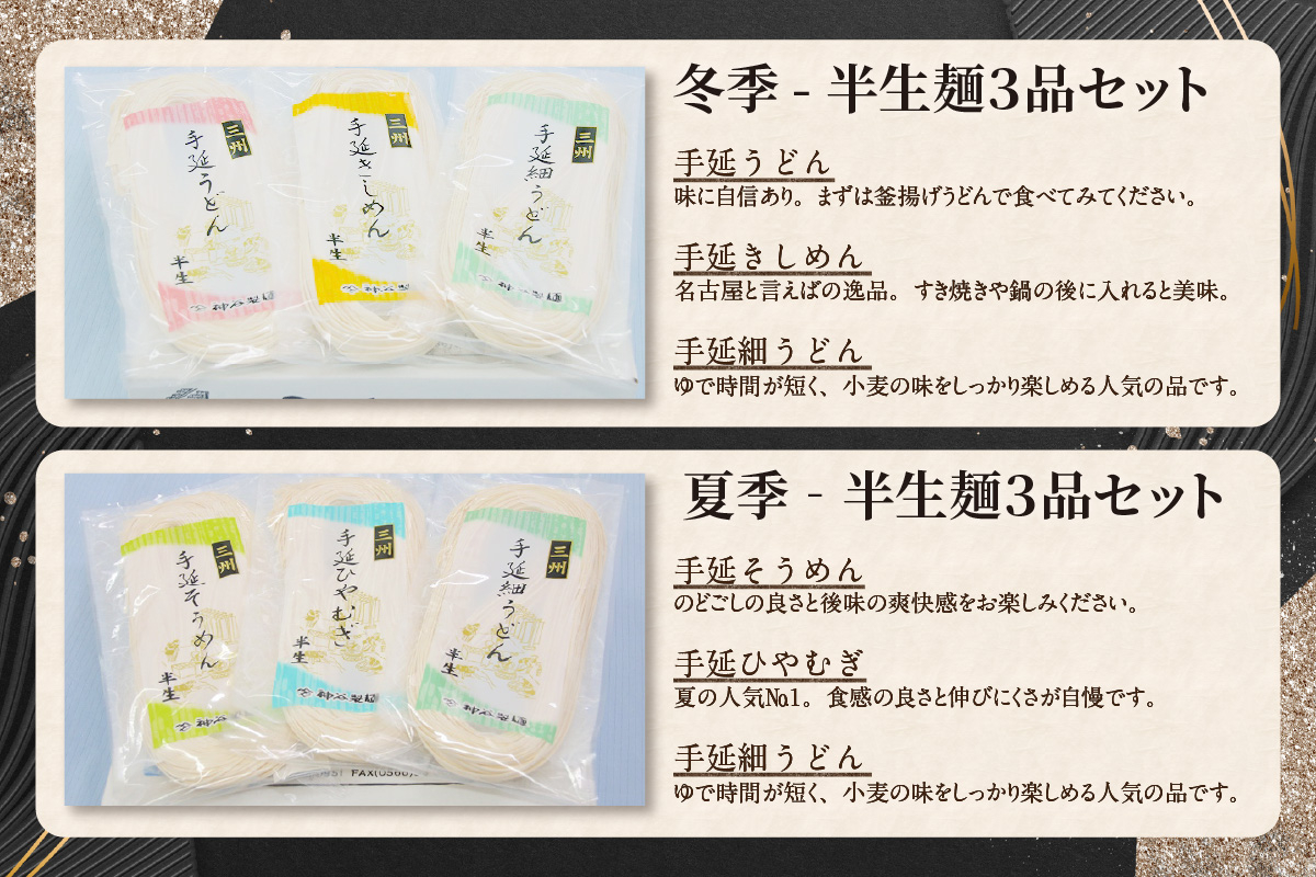 季節によって麺の種類が変わる、半生めんです。 三州手延めん半生麺セット