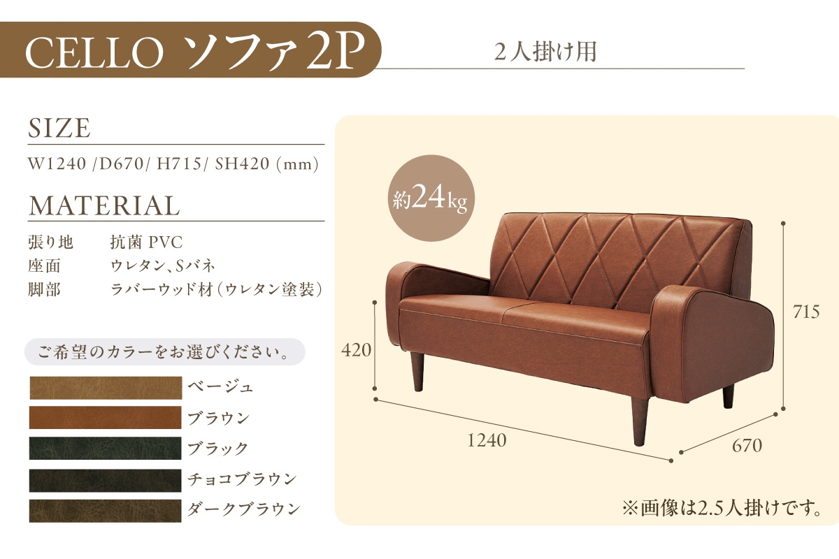 なだらかな曲線が美しい2人掛けソファ ソファ 2P CELLO(チェロ)(色は5色より選択)