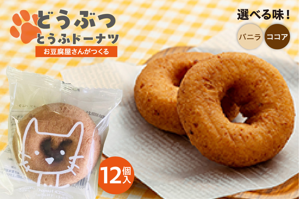 絹豆腐をたっぷり練り込み、ふんわり仕上げたおとうふ屋さんが作ったドーナツ 【選べる2つの味!バニラ・ココア】どうぶつとうふドーナツ 12セット
