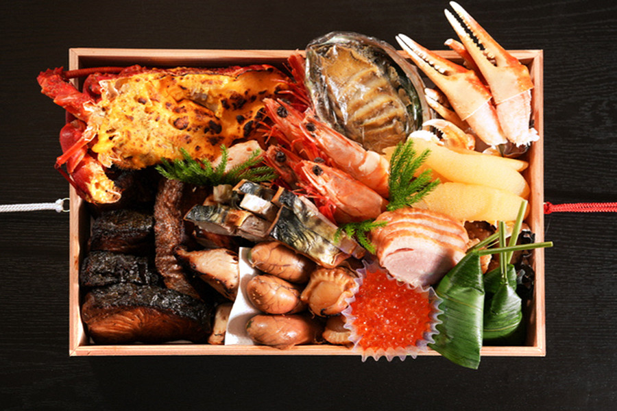 | 容量 | 29.2cm×19.5cm 二段 ■お品書き 鮑(あわび)酒蒸し、伊勢海老黄身焼、数の子、ブリの照り焼き、鰆の幽庵焼き、金目鯛醤油麹焼き、海老つや煮、だし巻き卵、新筍うま煮、蟹爪甘酢、たたき牛蒡、昆布巻き、丸十檸檬煮、田作り、黒豆、酢蓮、五色なますなど30品目。 |