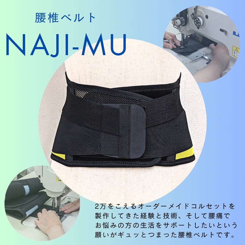 腰痛でお悩みの方の生活をサポートしたいという願いがギュッとつまった腰椎ベルト 腰椎ベルトNAJI-MU 黄色|腰痛 サポーター 骨盤 腰 改善 メッシュ【0839-0846】