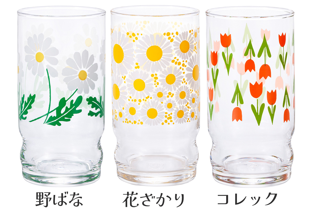 アデリアレトロに「アエリアアレンジ」が仲間入り! アデリアアレンジ タンブラー 3個セット (野ばな・花ざかり・コレック/風船・鈴の花・花レース)|アデリアレトロ 昭和 復刻 かわいい コップ カップ グラス 食器 アデリア 石塚硝子 [0775-0777]