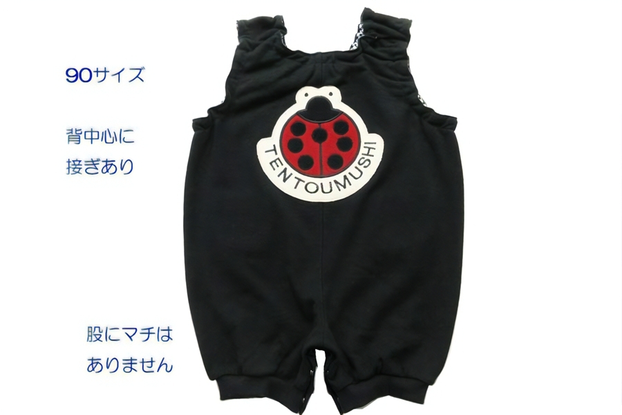 とても柔らかく、脱ぎ着せがしやすい。 TENTOUMUSHI パイルワッペンロンパース・黒・90サイズ|子供 服 赤ちゃん ベビー スナップ 釦 ボタン 肩ひも 綿 国産 日本製 お祝い てんとう虫 [0811]