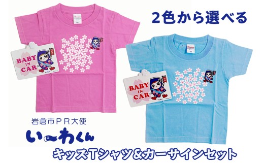 キッズTシャツと「岩倉市PR大使い~わくん」のカーサインのセットです。