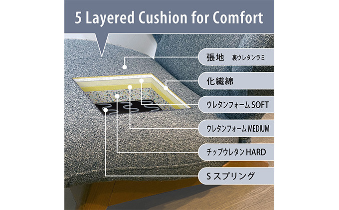 座面は5層もの積層構造クッションになっており、ジワリとした重厚な座り心地を実現しております