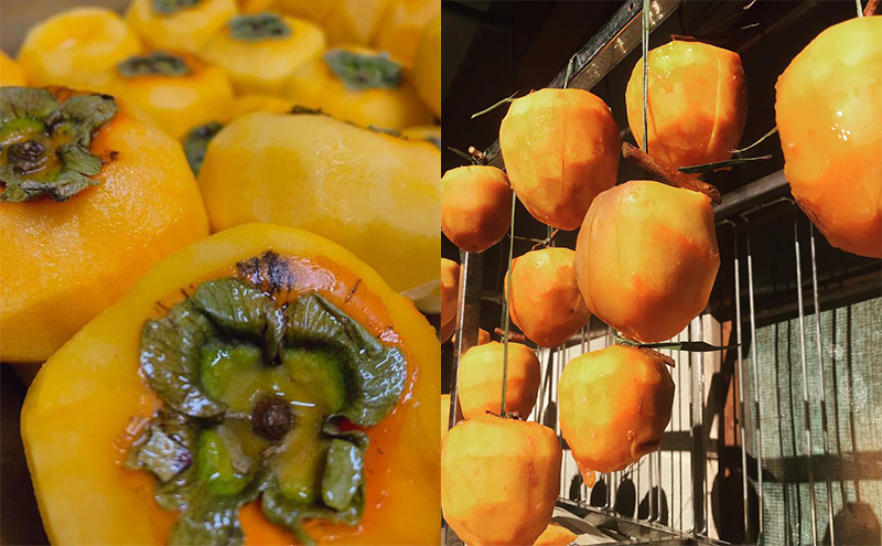 当社ENCORE TSUBAKIのシュトーレンは、オリジナルの小麦で起こした天然酵母生地を使用。練りこだ柿やリンゴは自家干しし、ドライフルーツをラム酒に長時間漬け込みました。