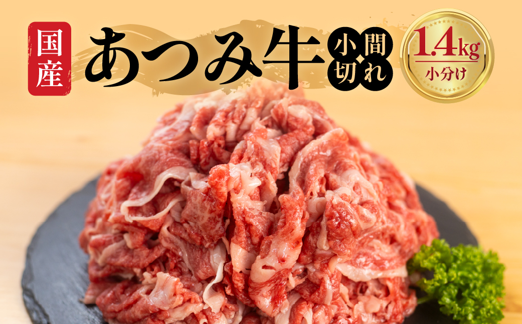 愛知県産あつみ牛の牛小間切れを280×5パックのたっぷり大容量ででお届け。