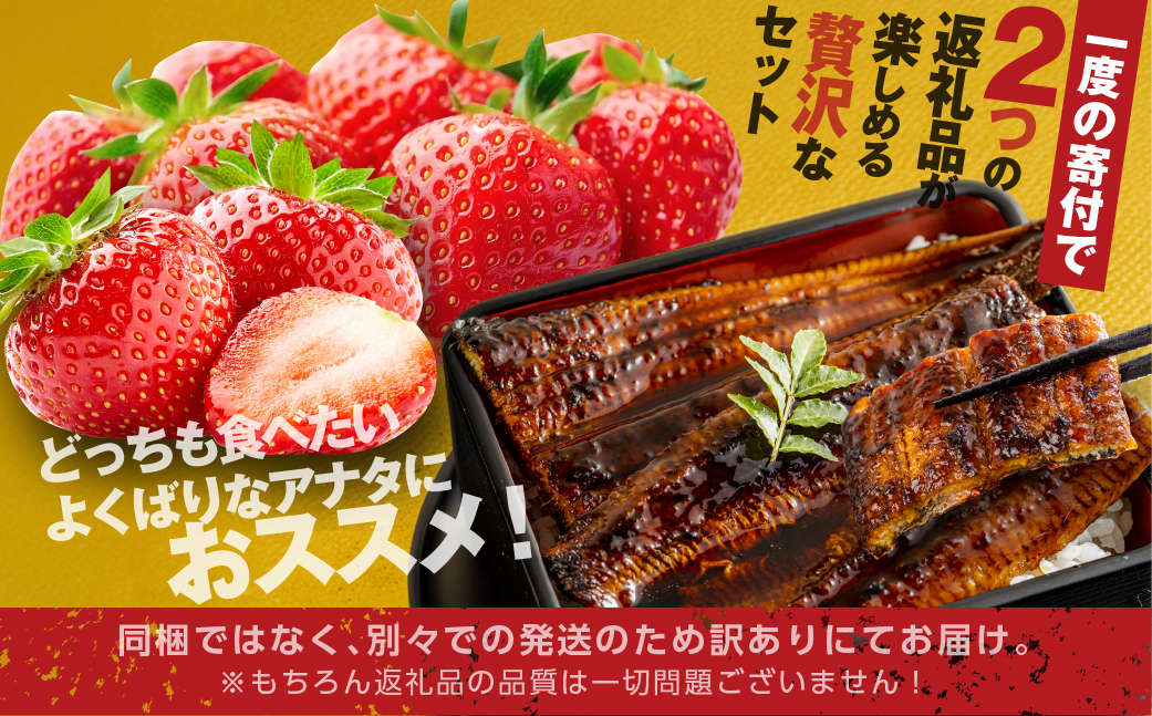 一度の寄付で2つの返礼品が楽しめる贅沢なセット 青うなぎ&いちご 渥美半島よくばりセット うなぎ 蒲焼き 鰻 ウナギ うなぎ蒲焼 惣菜 幻 簡単調理 おいしい 高評価 ふるさと納税 魚 さかな 魚介 ランキング 苺 いちご フルーツ 旬 紅ほっぺ べにほっぺ 高糖度 甘い 果物 くだもの 入手困難 期間限定 数量限定 季節限定 ふるさとチョイス キャンペーン おすすめ