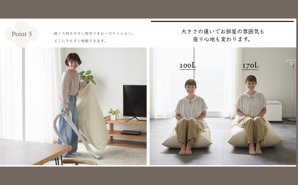 ビーズの補充やカバーの洗濯ができるので清潔に長くご使用して頂けます。