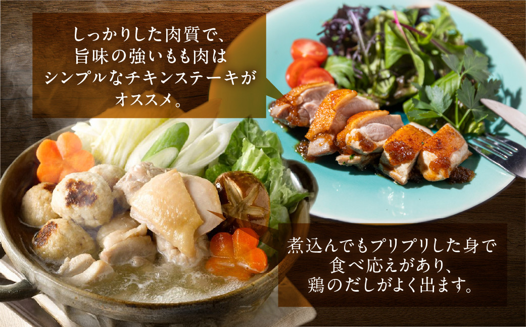 一般の鶏に比べると約3倍の飼料と2.5倍の飼育期間がかかりますが、その分、肉に適度な弾力が生まれコクが増し、うま味の濃い味が自慢です。