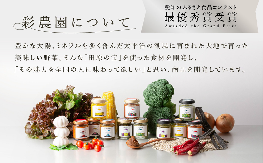 田原市産の農産物を可能な限り利用し、加える調味料も自然由来無添加にこだわり体に優しいものをセレクトして製造しています。