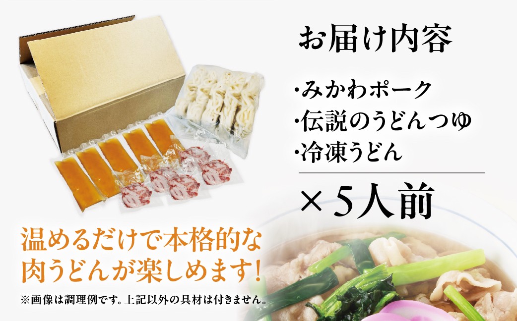 | 容量 | みかわポーク 伝説のうどんつゆ 冷凍うどん 各5人前ずつ |