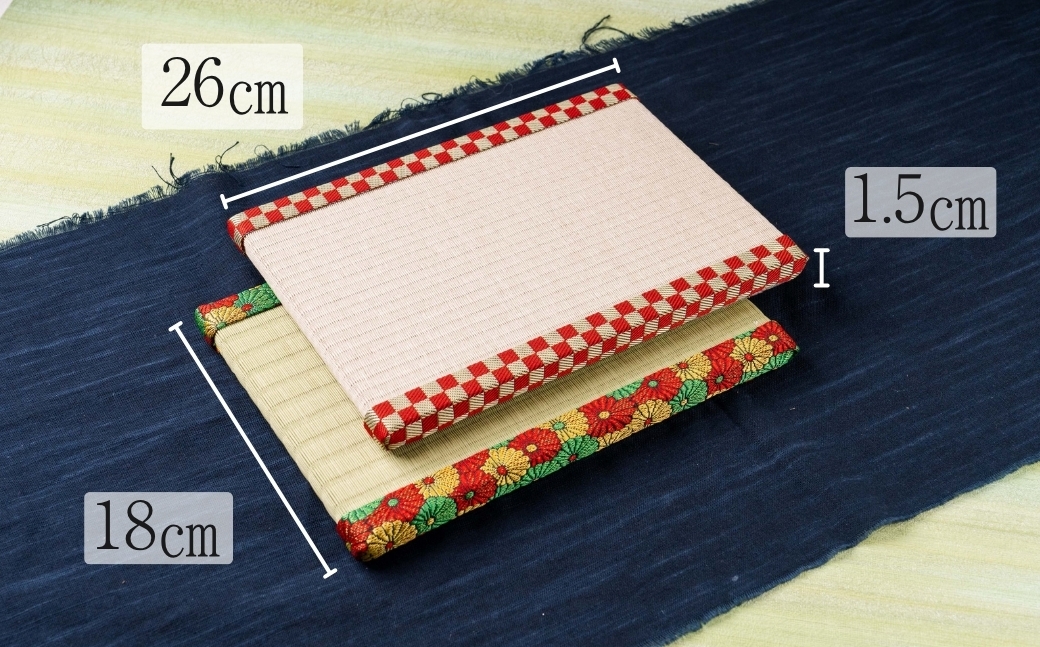 | 容量 | ミニ畳 1枚 (26cm×18cm×1.5cm) 畳表(和紙:色は銀白灰桜) |