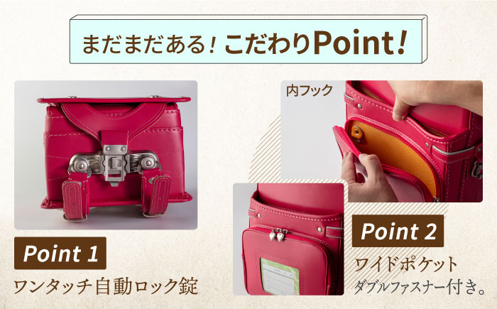素材から小さな部品までひとつずつ心を込めて丁寧に作られていますので、安心・安全で丈夫なランドセルを提供します。