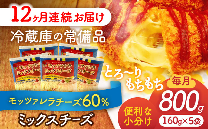 【12回定期便】 モッツァレラミックスチーズ 160g×5袋 12ヵ月…