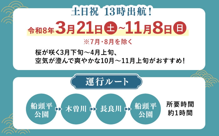 愛西市 木曽川 木曽川観光船 観光船 遊覧船 周遊船 川下り 体験チケット チケット 家族旅行 親子体験 グループ旅行 カップルおすすめ 日帰り観光 自然体験 期間限定 土日祝限定 1時間周遊