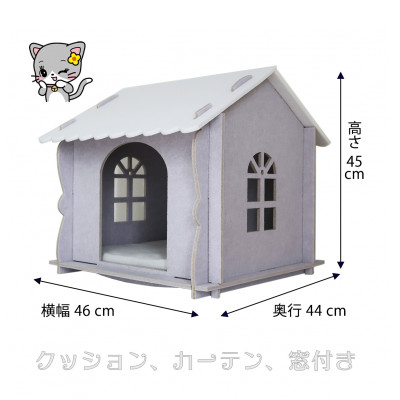 キャットハウス(カーテン、クッション、窓付き) ライトグレー 1個【1300462】