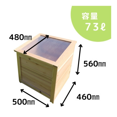 | 容量 | ■お礼品の内容について ・木製コンポスト(消滅型)ブラウン[73L×1点] 製造地:愛知県北名古屋市 ■原材料・成分 材質…杉無垢板 詳細外寸サイズ…縦約46cm・横約50cm・高さ約56cm ■生産者の声 社員が実際に使ってみて ・木工職人が手作りで作っている為とても丈夫。 ・家族5人分の生ごみが無くなり燃えるごみの日が楽になりました。 ・プランター菜園の肥料に利用していますが野菜の成長が良く今後も楽しみです。 ・子供達の食育の為にも循環する様子が分かってとても良い教育になりました。 生産過程…木工職人の手作業による自社製造 環境への取り組み…木のワークショップでも人気の製品です。生ごみが減る活動として取り入れています。 ベランダやお庭・カーポートの一角に置けることで気軽に生ごみ処理が出来て堆肥がつくれます。 ■注意事項/その他 無垢の木で手作りしています。節や多少の割れがある場合がございます。 コンポストとしては問題ございません。 割れなどは使用していく過程でも生じる事があります。ご了承ください。 組み上げた段階で検品を行い塗装を行います。検品時に安定性のチェックも行いますが、塗装をし塗装の水分で膨張しその後乾燥で収縮する過程で多少の隙間や、捩じれが生じる事があります。 床に置いて頂いた際にガタツキが生じてしまうことがありますが、土を入れて多少の水分を与えて頂いた後生ごみを投入していくと同様に膨張収縮を繰り返すことになり落ち着いていきます。 これらの木材の調湿性はコンポストボックスとして性能を発揮するうえで重要な働きをしていると考えております。 木材特有の現象の為、ご理解の上ご使用いただけると幸いです。 ※画像はイメージです。お届けするお礼品は画像1枚目のブラウン1点です。 |