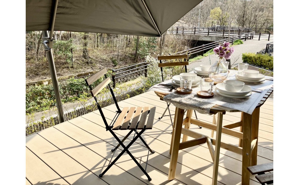 川のせせらぎと鳥のさえずりに耳を傾けながら、日常を離れた穏やかな時間をお過ごしいただけます。