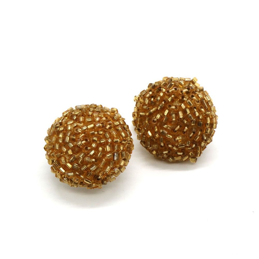 フランスで買い付けた、アンティークのビーズ刺繍ボタンをイヤリングに仕立てました。