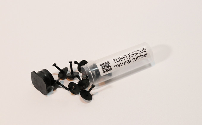 この商品はチューブレスタイヤ用パンク修理キット(TUBELESSCUE)の専用ゴムパッチとして開発されました。