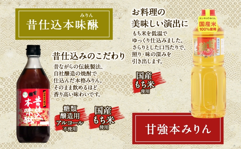 [№5830-0259]本みりん 味くらべ3種 セット 各1本 計3本 甘強本みりん 1000ml PET 昔仕込本みりん 500ml 純米本みりん 500ml 調味料 本味醂 みりん 味醂 本格 甘み 旨味 料理 無着色 国産 プレゼント 御礼 お取り寄せ ギフト 送料無料 甘強酒造 愛知県 蟹江町