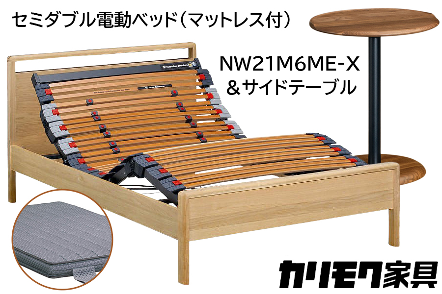 人間工学を究めるカリモクの新感覚マットレス 【カリモク家具】 セミダブル電動ベッド NW21モデル(マットレス付)【NW21M6M※-X・NN80M5CO】&サイドテーブル