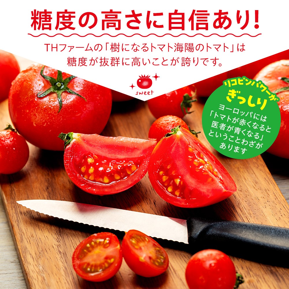 THファームの「樹になるトマト 海陽のトマト」は糖度が抜群に高いことが誇りです。 ヨーロッパには「トマトが赤くなると医者が青くなる」ということわざにあるように リコピンパワーがぎっしり詰まっています。
