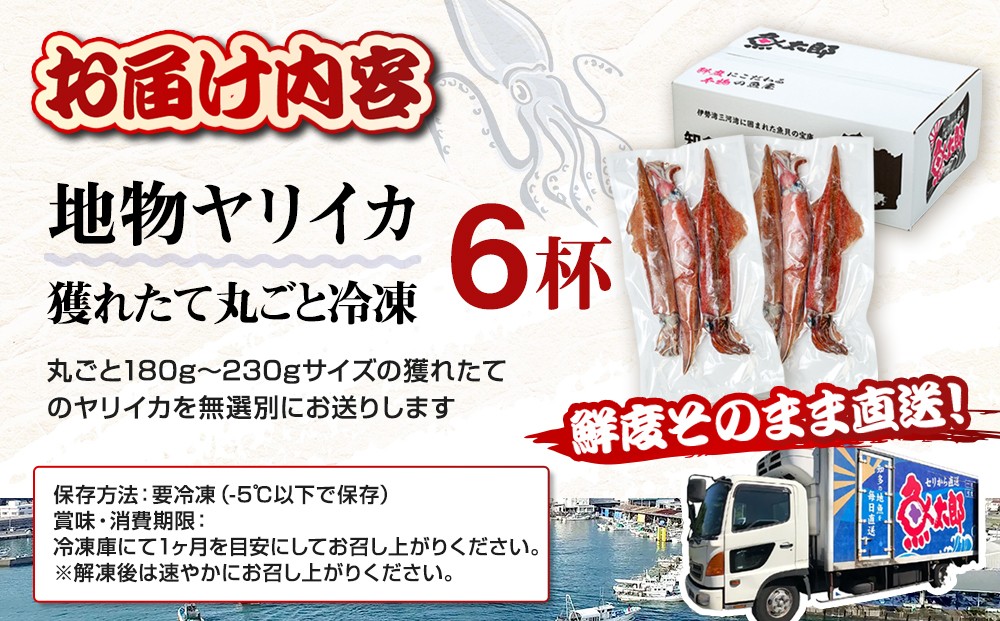 魚太郎が誇る目利きの技。新鮮ヤリイカをお届け! 地物ヤリイカ獲れたて丸ごと冷凍 6杯 烏賊 いか ヤリイカ イカ 晩ごはん イカフライ いかめし おかず お弁当 刺身 おさしみ 海鮮 鮮魚 おつまみ 晩酌 惣菜 人気いか 美味しいいか 美味いイカ IKA ika おすすめ 地物 ご当地 南知多 愛知県 南知多町