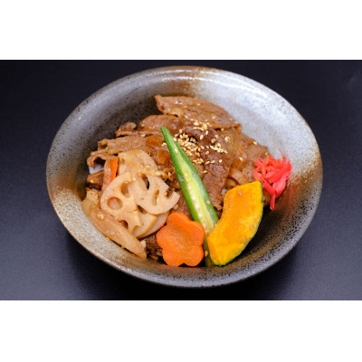 知多半島の穏やかな風土でのびのび育った柔らかな肉質と甘さを持った味わいが特徴の武豊町産の知多牛バラ肉を武豊の豆味噌をベースとしたタレで玉葱と共に軽く炒め、仕上げた逸品です。