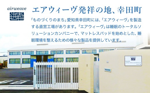 株式会社エアウィーヴは愛知県幸田町で2004年に生まれた企業です。それまで製造していた押出成形機からでる釣り糸を応用して生み出されたのが、エアウィーヴのマットレスパッドです。現在も幸田町の直営工場では製品が生産されています。
